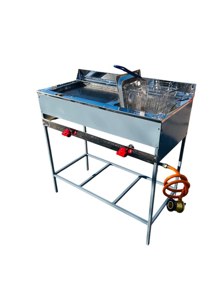 Plancha 50x30cm + freidora de 7 litros + manguera regulador y abrazaderas